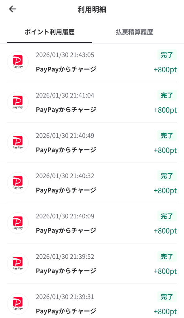 で、試しにもう一度800チャージしたら反映されちゃって