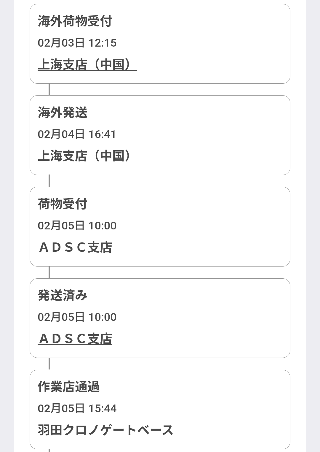 っていうか、今は上海から発送されるんだね。