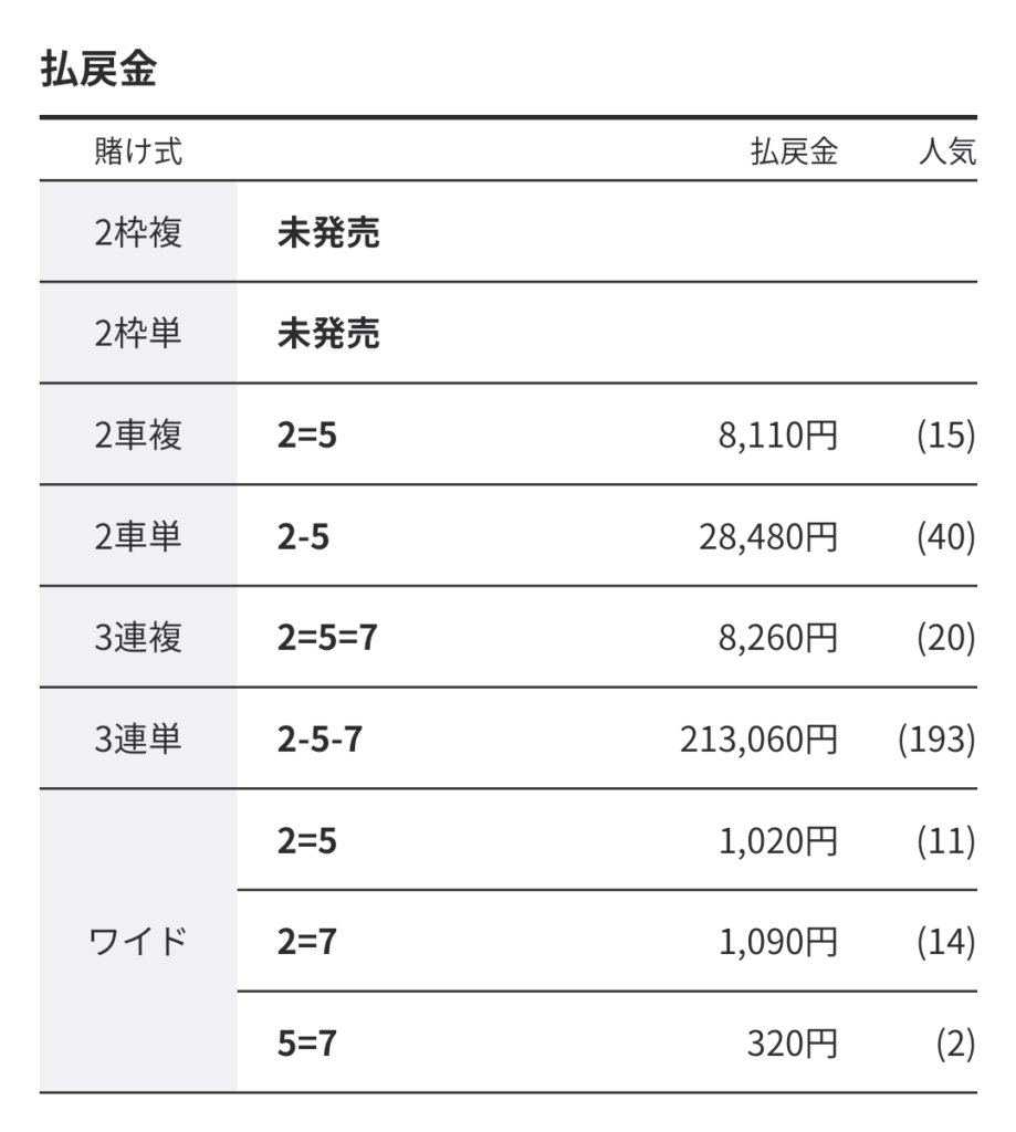 俺はひねくれているので、ここは番手を外した車券から…