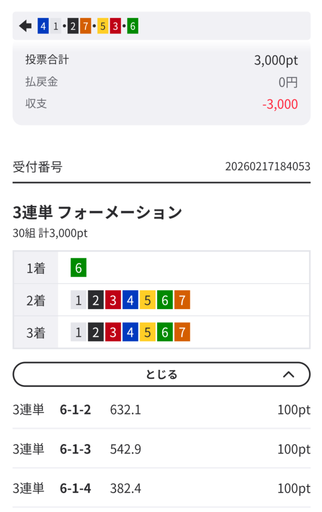流れを変えるには小さい配当取っても仕方ない。6頭の総流しじゃあ!!