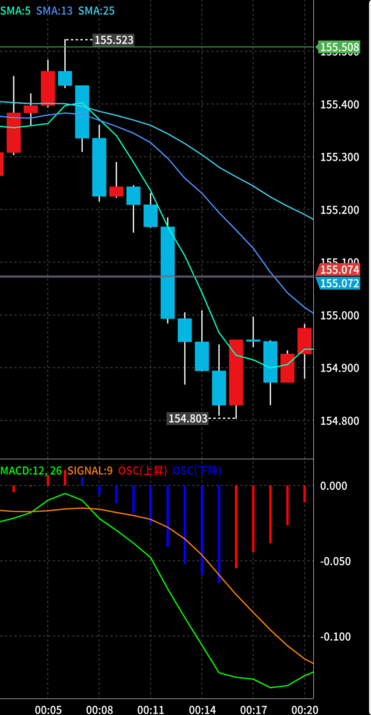 1時にドル円が155.05を切れば