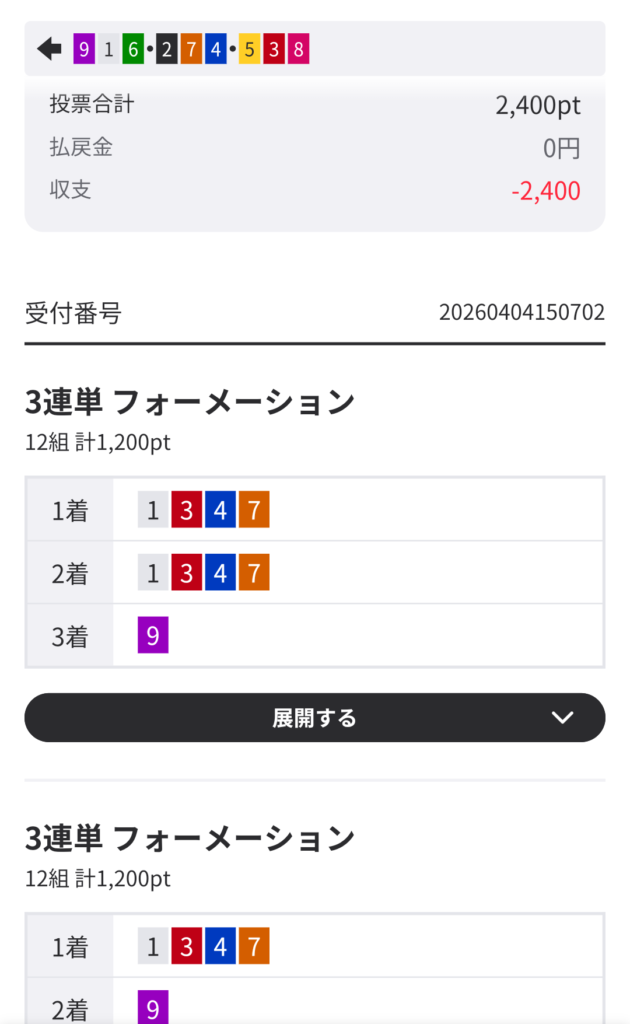 ならば二、三着付けで配当が大きい所を狙うが…